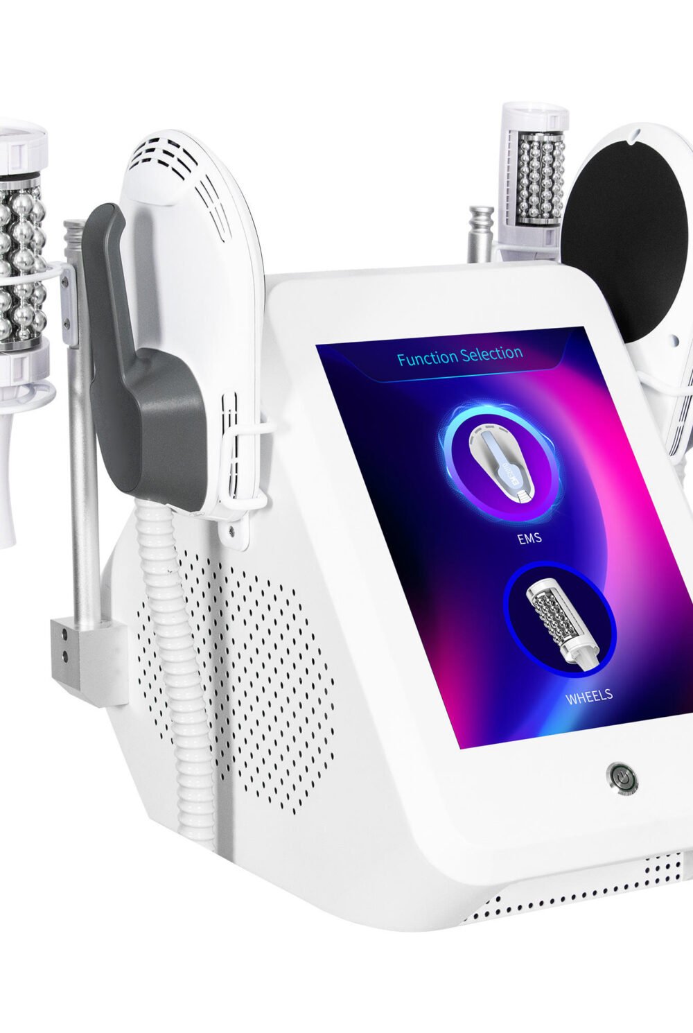 Original price was: $2,500.00.$1,599.00Current price is: $1,599.00.EMS Muscle Stimulator combines EMS technology with RF for deep muscle activation and skin tightening. The inner ball roller uses 360° pulsating compression and infrared to reduce cellulite and sculpt the body.